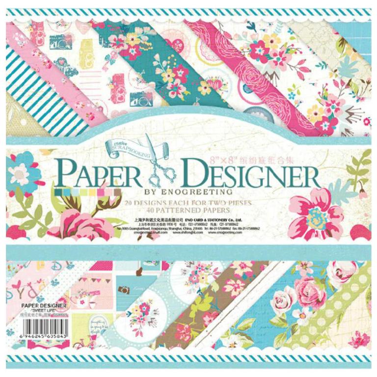 Design #DSM005, 8x8inch 40sheets printed patterns scrapbook paper origami paper DIY gift Card Making Handmade Home deco Pattern paper Flower Paper Pack