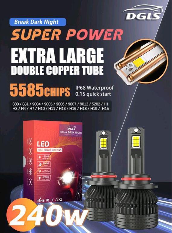 - • Universal LED headlights with high/low dual point functionality.• Impressive 240watts power output for enhanced brightness.• Produces a stunning 40000 lumens for superior visibility.• One year warranty for added peace of mind.• Ideal for automotive replacement parts in the motors industry