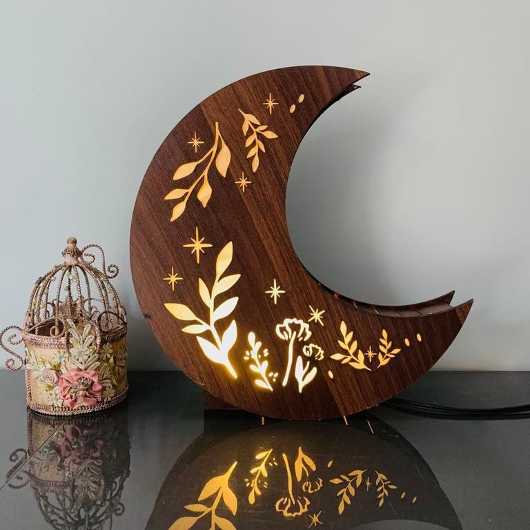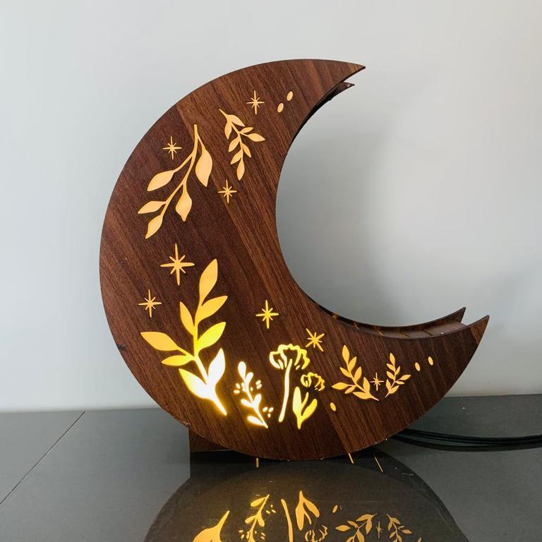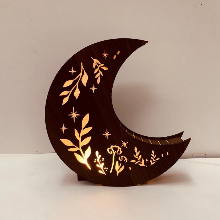 Enhance your living spaces with the Dotz 3D Laser-Cut Wooden Lamp featuring LED Moon Light. This lamp combines modern aesthetics with functionality.