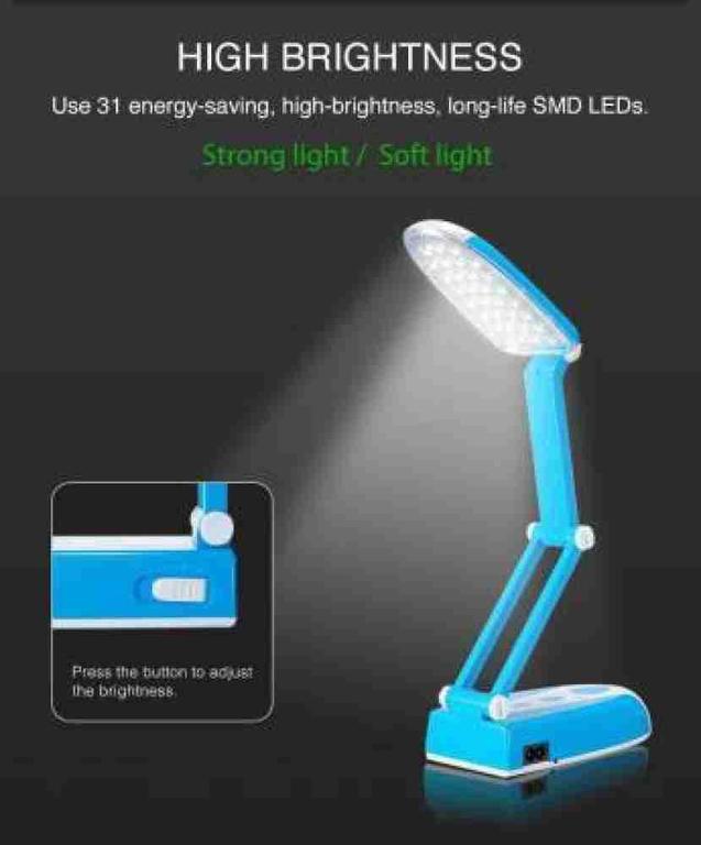 The DP Portable eye protection LED desk lamp offers a versatile lighting solution for your reading and study needs. Its foldable and rechargeable design, along with adjustable brightness settings, ensures comfort and convenience. Lightweight and equipped with a durable plastic body, it is easy to transport and handle.