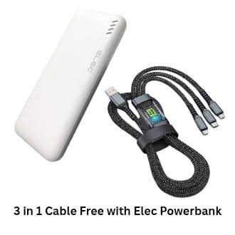 Elec Power Bank 10,000mAh | Fast Charging and Compact Design with 3-in-1 Cable