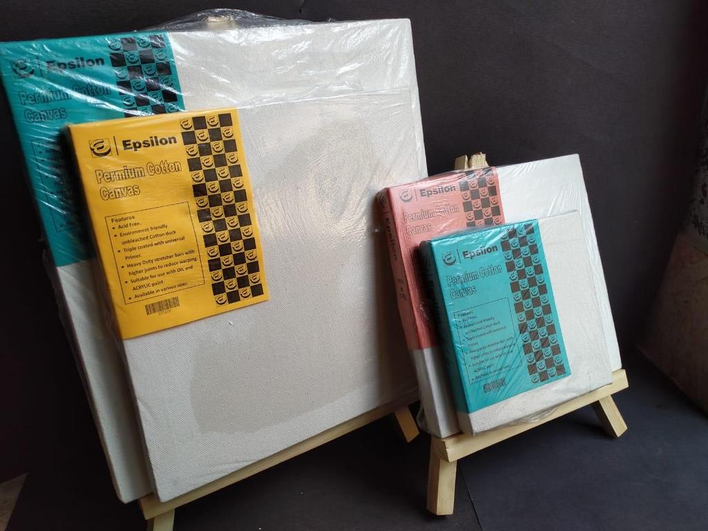 Epsilon Canvas Set of 4 With 2 Wooden Easels 12x18 /10x10/8x8/6x6