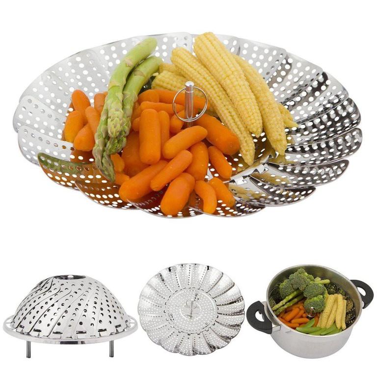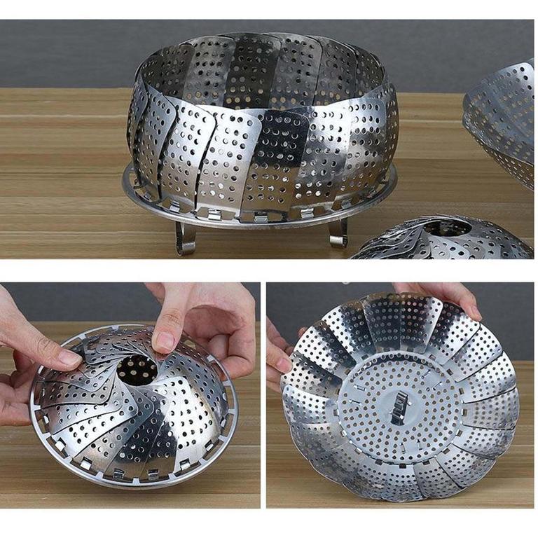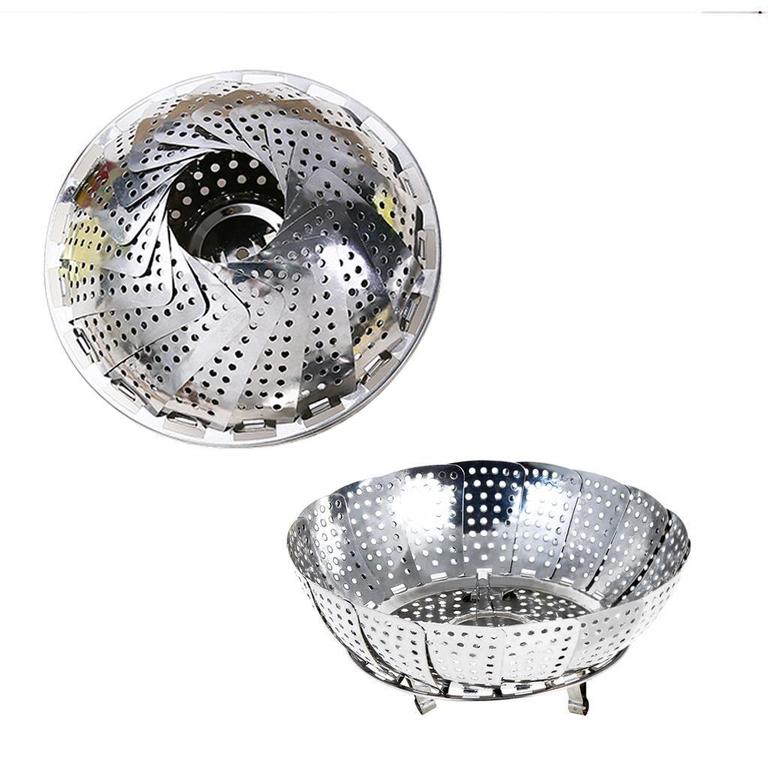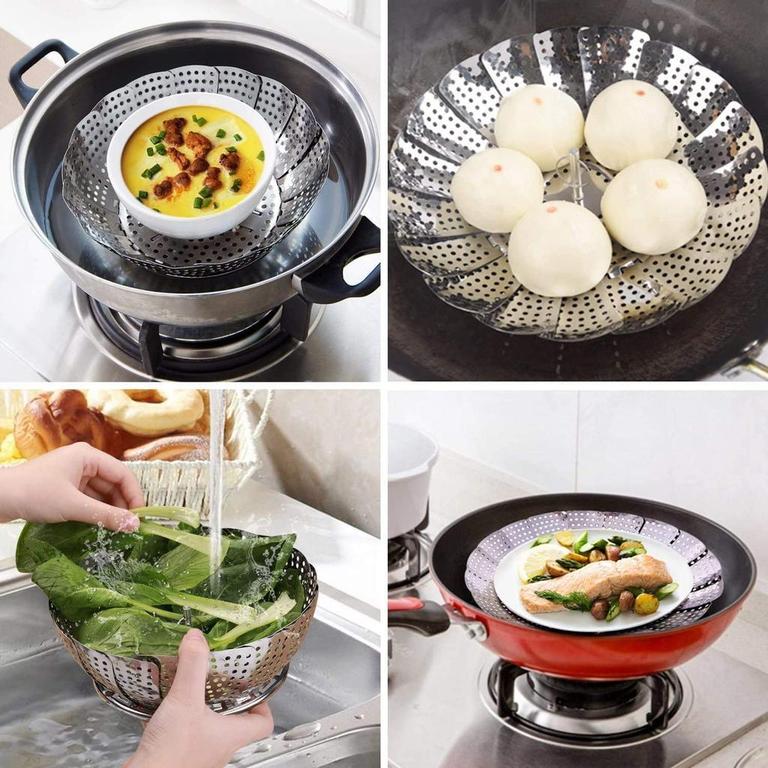 Expandable Folding Steamer Basket Set for Vegetables - Metal Cooking Tool and Multi-Purpose Rack