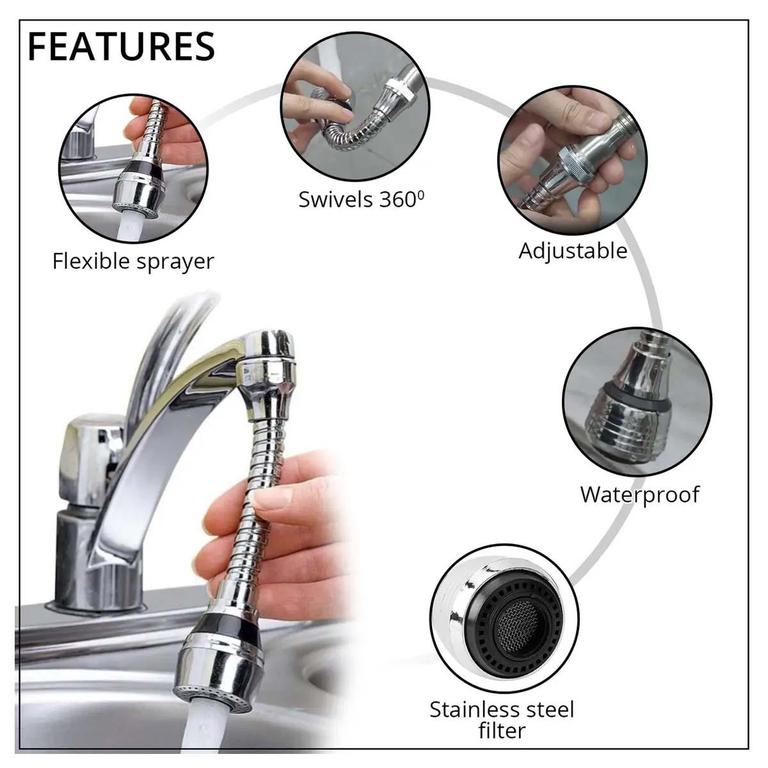 The Face Value 360 Flexible Faucet Sprayer is designed to upgrade your standard faucet into a versatile, hands-free sprayer, providing extended reach. It's ideal for use in kitchens, bathrooms, and laundry rooms.