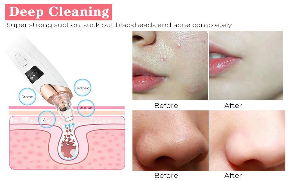 - Safe, Pure, and Effective: Our blackhead pore vacuum suction cleaner utilizes a safe, healthy, and purely physical approach to remove blackheads, acne, and excess oil without causing harm to your precious skin. It effectively eliminates blackheads, whiteheads, excess grease, dead skin cells, and makeup residues. Deep cleansing, improved blood circulation, and enhanced skin elasticity are just some of the benefits you can expect.
