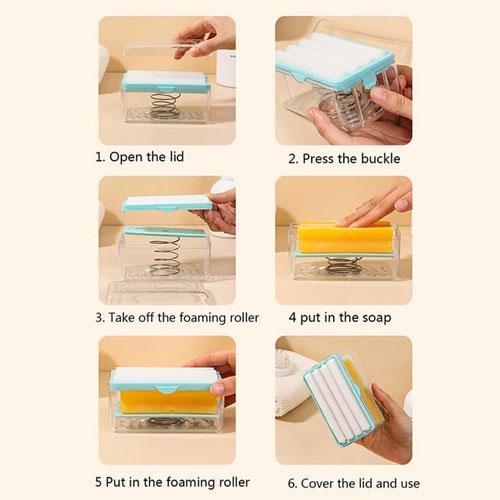 This innovative soap dish features rollers that create a rich lather as they work against the soap. Please note that when the soap is first inserted, it may not produce an abundant lather.