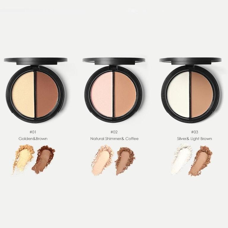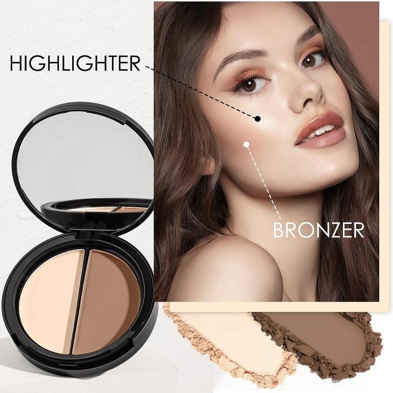 Enhance your natural beauty with this practical bronzer and highlighter duo. Perfect for highlighting, contouring, and adding color to your features, this versatile palette is user-friendly.