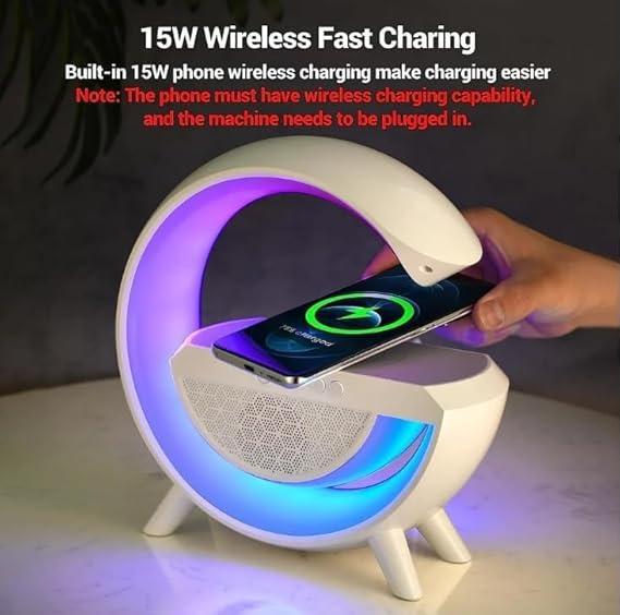 This lamp serves multiple purposes: it’s an atmosphere light, a fast wireless charger, a Bluetooth speaker, and a sleep aid, all combined into one.
