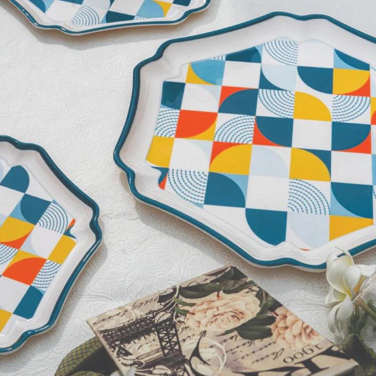 - Medium Tray: Snacks, Versatile, Melamine, Double-Glazed, Serving trays, serving dishes, tray set