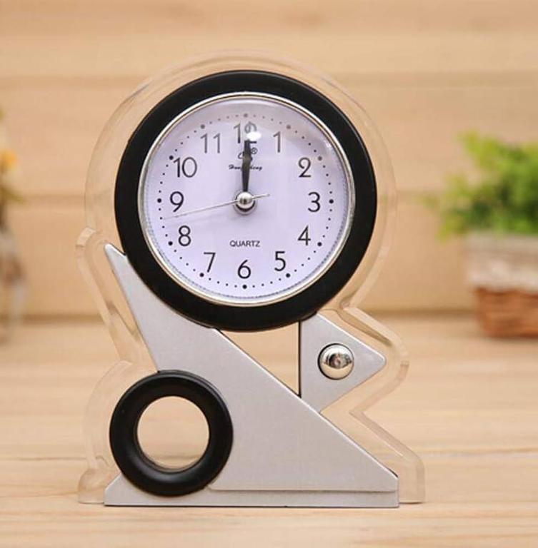 This clock showcases a distinct angular base that not only ensures stability but also introduces a modern touch to its traditional functionality.