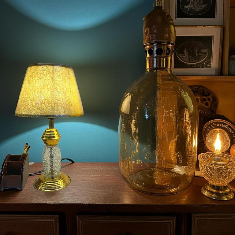 - Embroidered Golden Lampshade: Soft fabric with delicate golden thread patterns that emit a warm glow when illuminated.