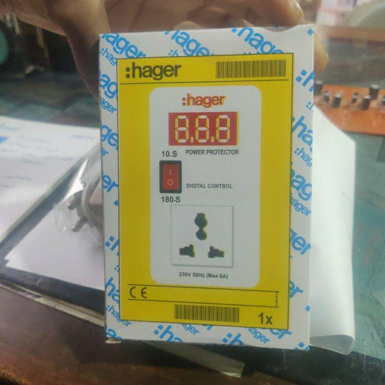 This Hager automatic voltage protector is designed for digital devices such as fridges, freezers, LCDs, TVs, and computers. It effectively prevents damage caused by voltage fluctuations.