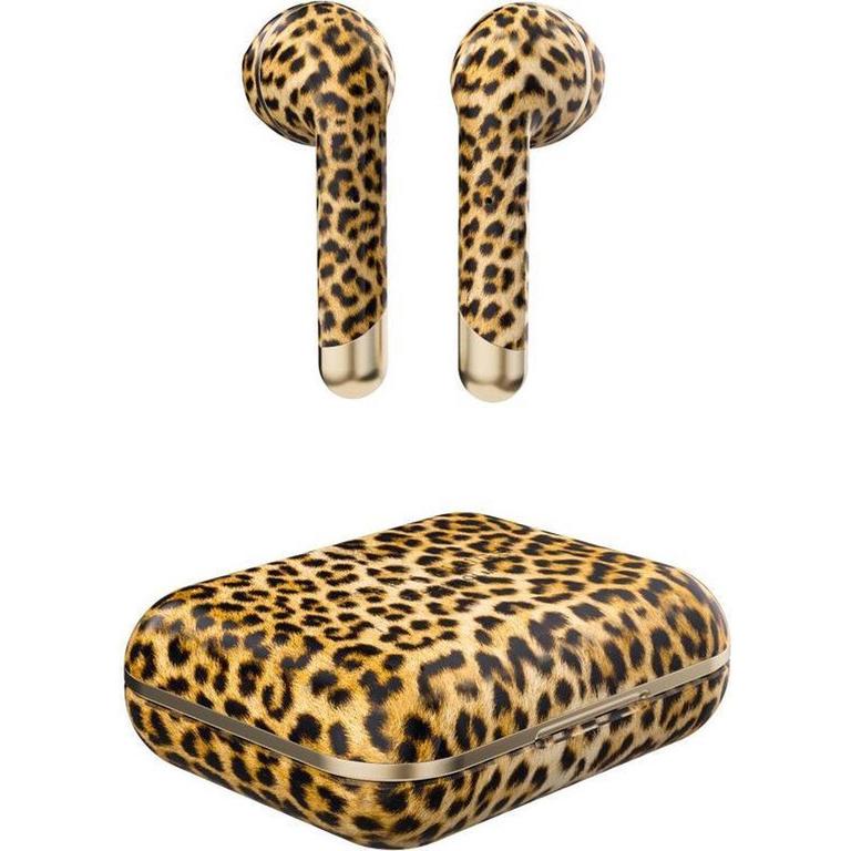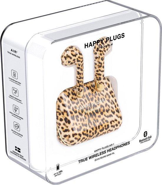 Happy Plugs Air 1 True Wireless Earbuds – Leopard Limited Edition | Bluetooth 5.0, Touch Controls, Built-in Mic, Stylish Charging Case