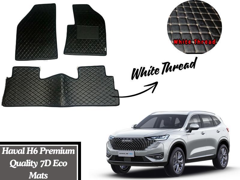 Haval H6 7D Eco Mats with White Thread in Black Color | Custom Floor Mats for Haval H6