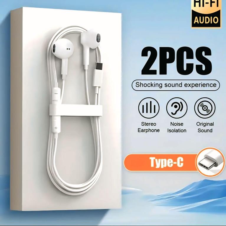HIFFI Original Type-C Stereo Earphones (2PCS) – Noise Isolation, Deep Bass, and Clear Calls