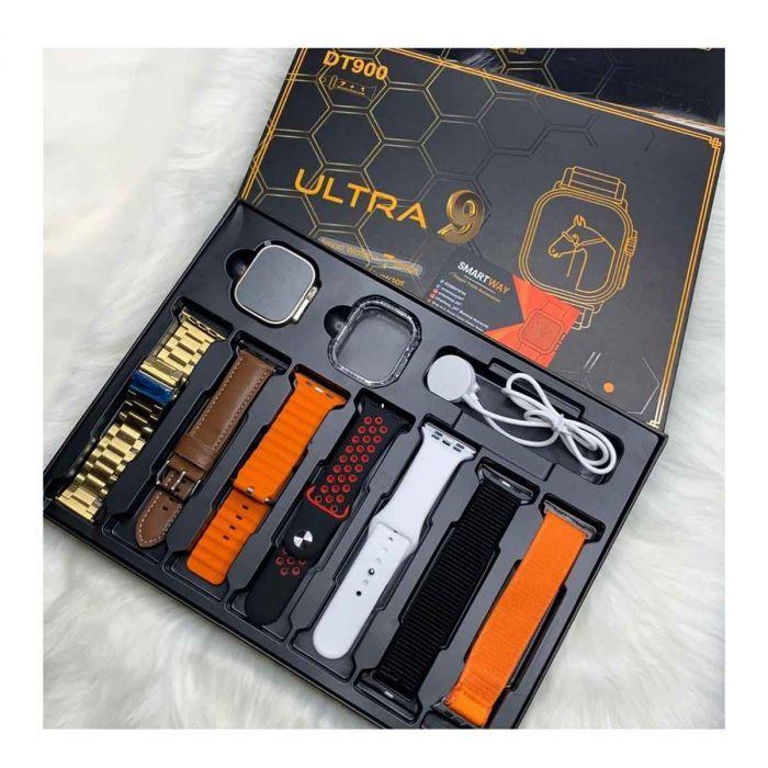 i20 Ultra Max 7-in-1 Smart Watch Set with Earbuds – T900 Ultra, Wireless Charger, and Golden Strap | Complete 10-in-1 Combo