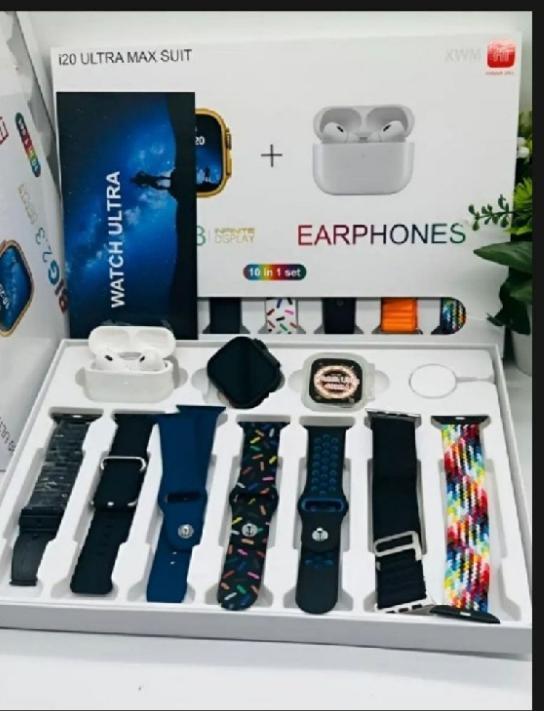 I20 Ultra Max Suit Smart Watch 10-in-1 Bundle | 2.3" Large Screen, 7 Straps, AirPods 2 included , android/ OIS compatible, Bluetooth callingI20 Ultra Max Suit Smart Watch 10-in-1 Bundle | 2.3" Large Screen, 7 Straps, AirPods 2 included , android/ OIS compatible, Bluetooth calling .