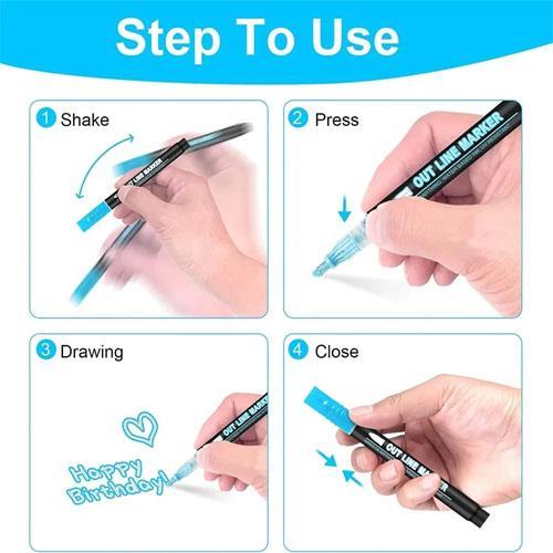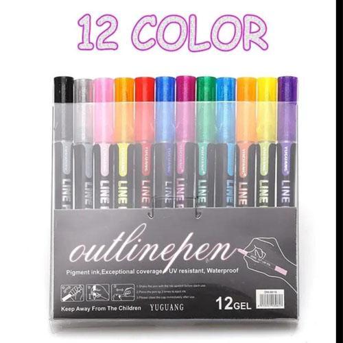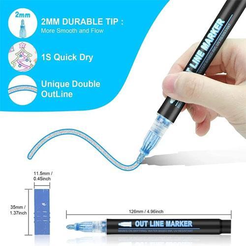 Enhance your creative projects with this imported 12-color double-line outline art marker set. Ideal for graffiti, scrapbooking, bullet journaling, and poster crafting.