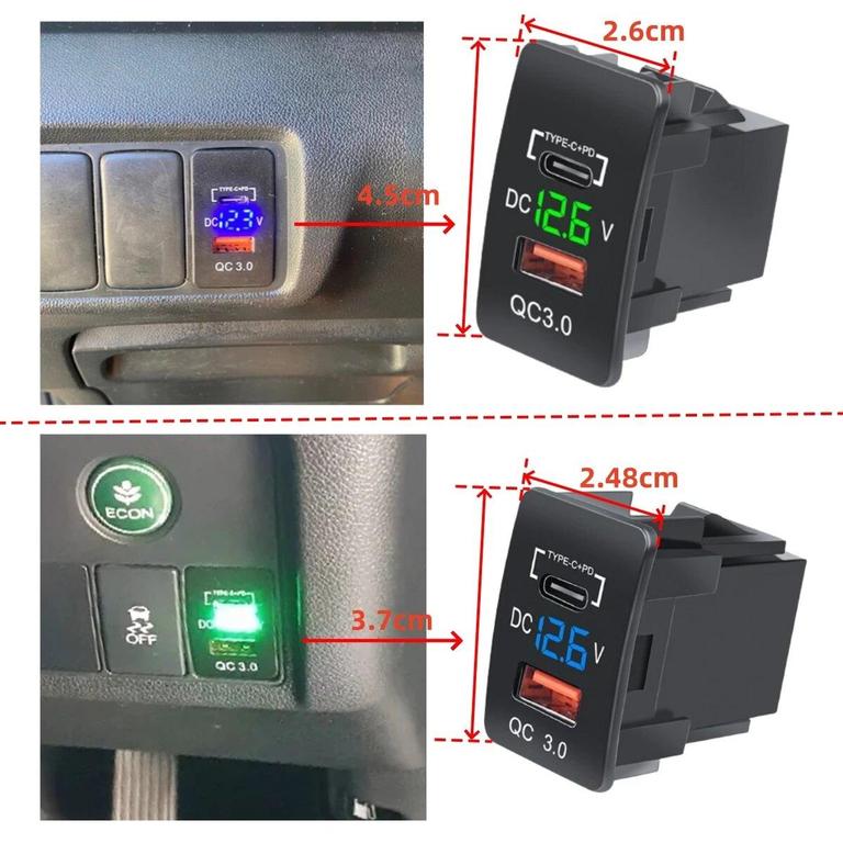 This charger socket features both USB and Type-C ports, enabling you to charge various devices such as digital cameras, mobile phones, and USB accessories.