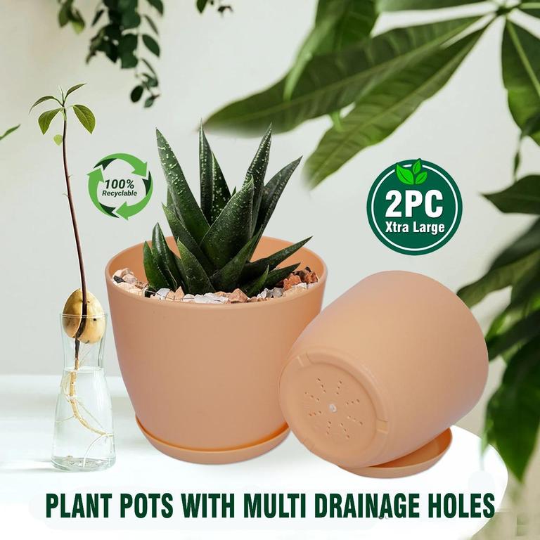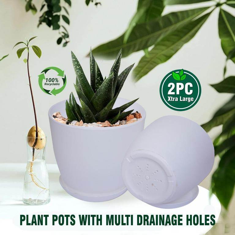 - Includes matching saucer trays for drainage.