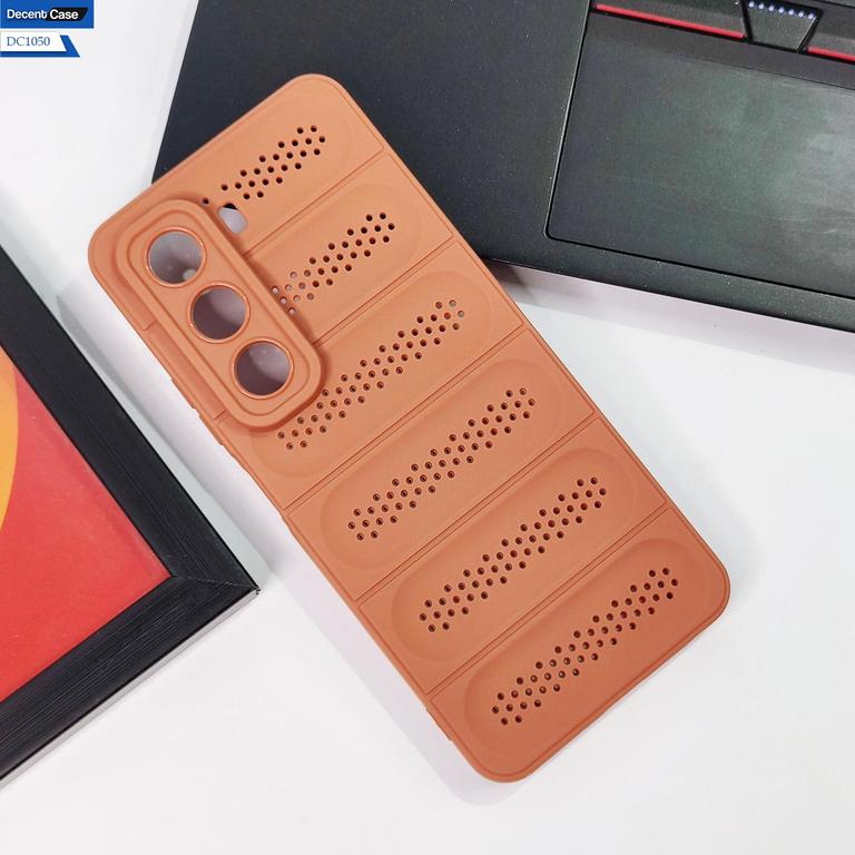 This brown soft case features a breathable mesh grid design, providing reliable protection for your Infinix Hot 50 4G smartphone. The case is designed to safeguard your device's camera while maintaining accessibility to all buttons and ports.