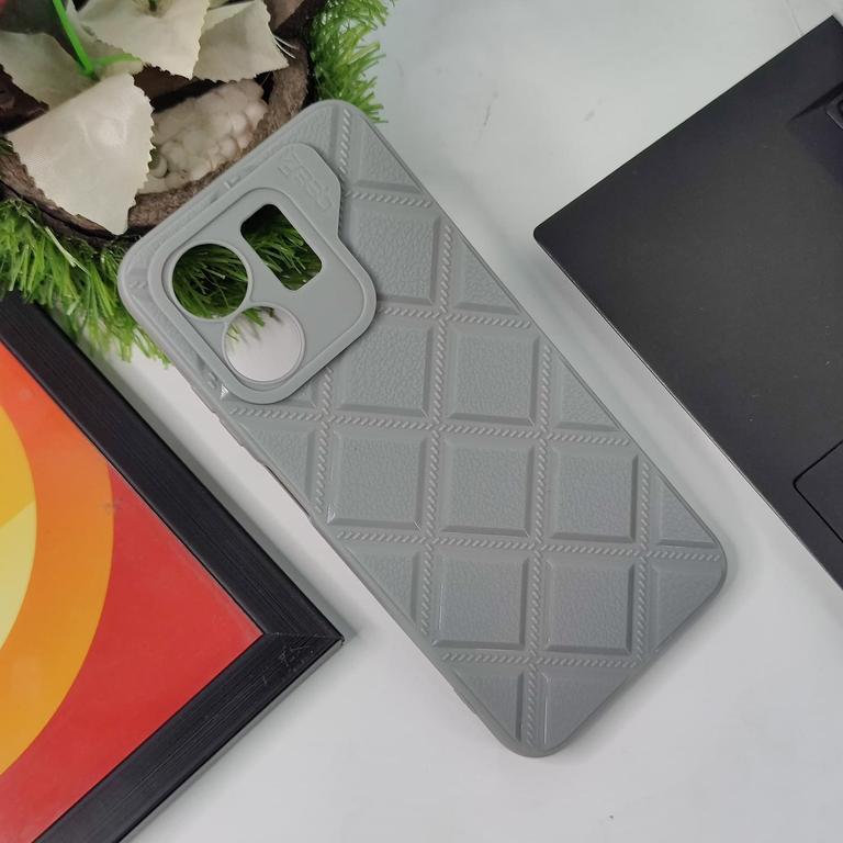 Protect your Infinix Smart 9 HD with this stylish gray case featuring a unique 3D cube leather texture design. It comes equipped with a camera protection feature to ensure your device remains safe from scratches and damage.