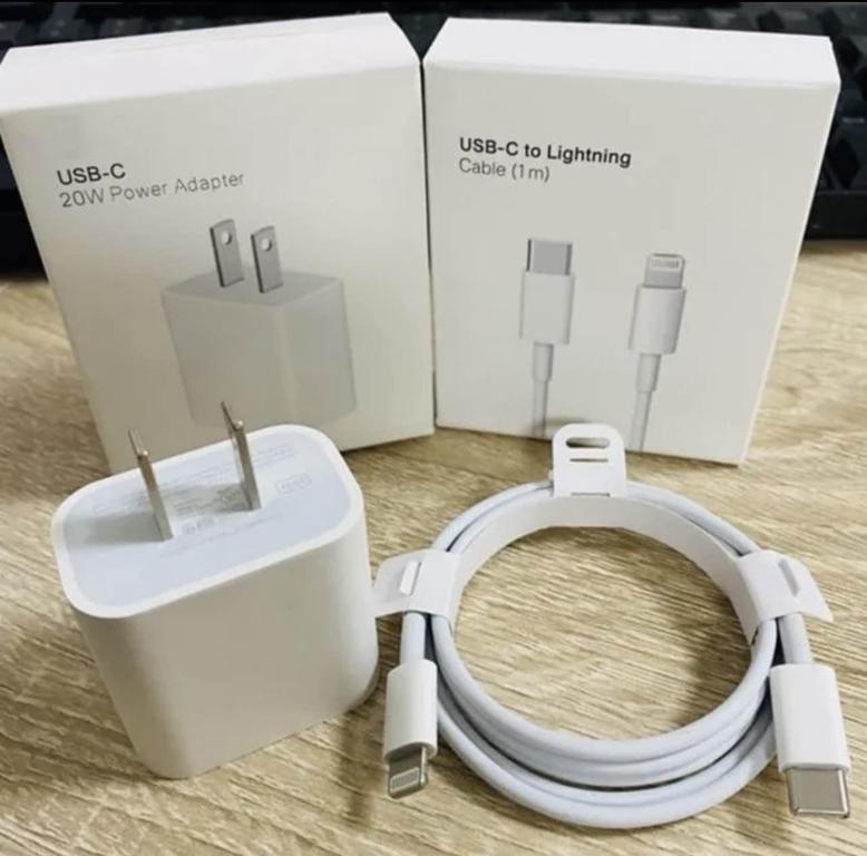 - USB-C 20W Power Adapter + USB-C to Lightning Cable (1m)