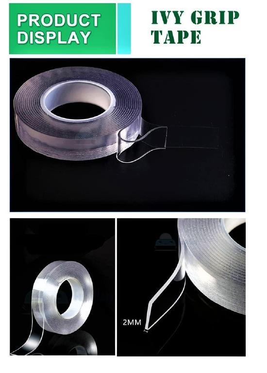 Ivy Grip Double-Sided Transparent Heavy Duty Tape - Removable and Traceless Adhesive for Various Uses - 3 Meters Long, 30 mm Wide