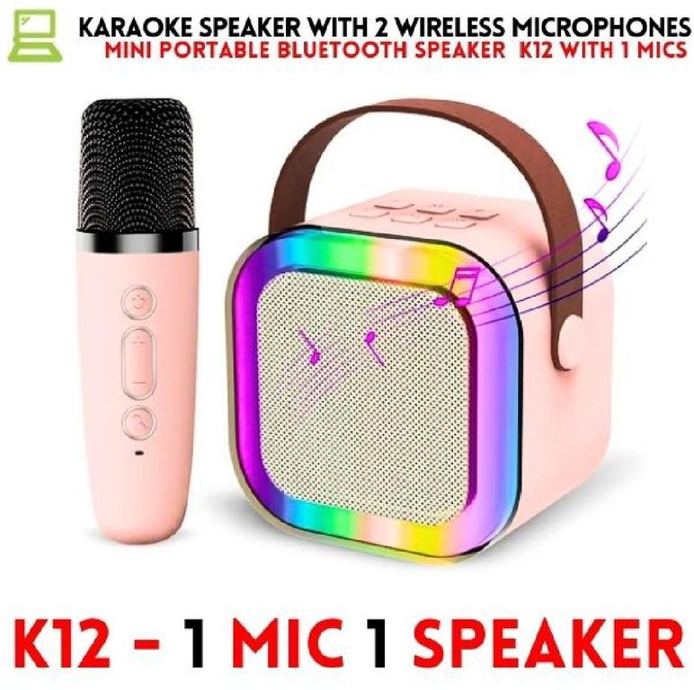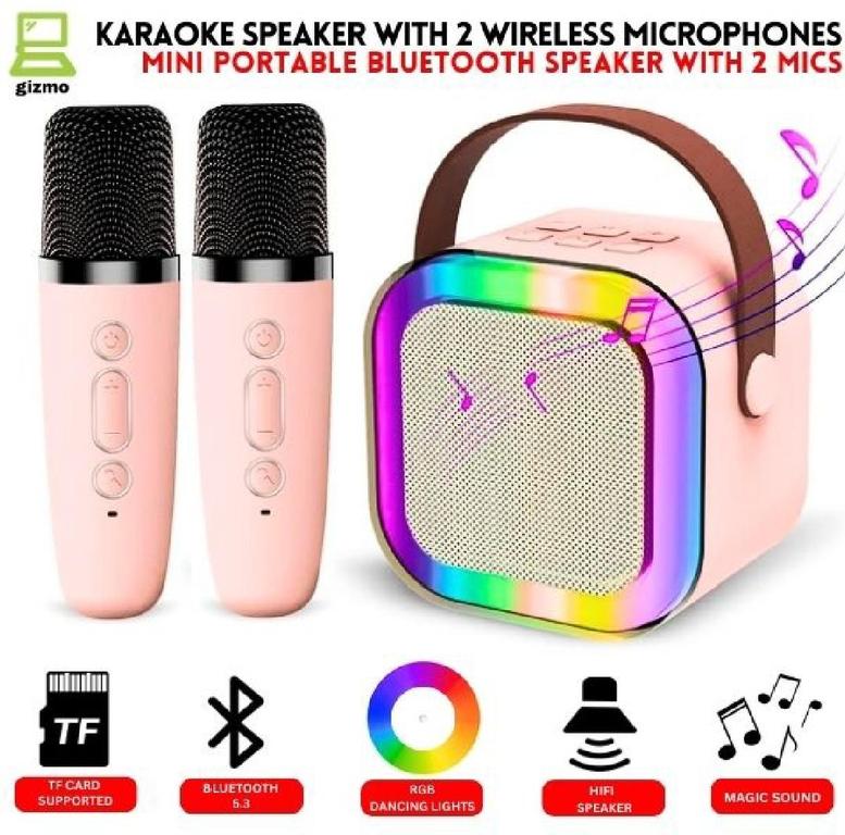 K12 Wireless Karaoke Microphone with Speaker - RGB Dancing Lights, Bluetooth Connectivity, and Versatile Audio Options - Available in Black, Blue & Pink