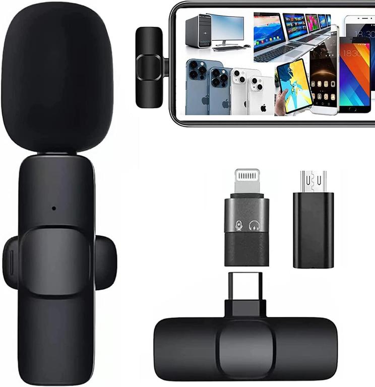 This digital mini portable recording clip microphone is designed for Type-C and Lightning mobile phones, cameras, and laptops. It is perfect for vlogging, YouTube, online classes, and Zoom calls.