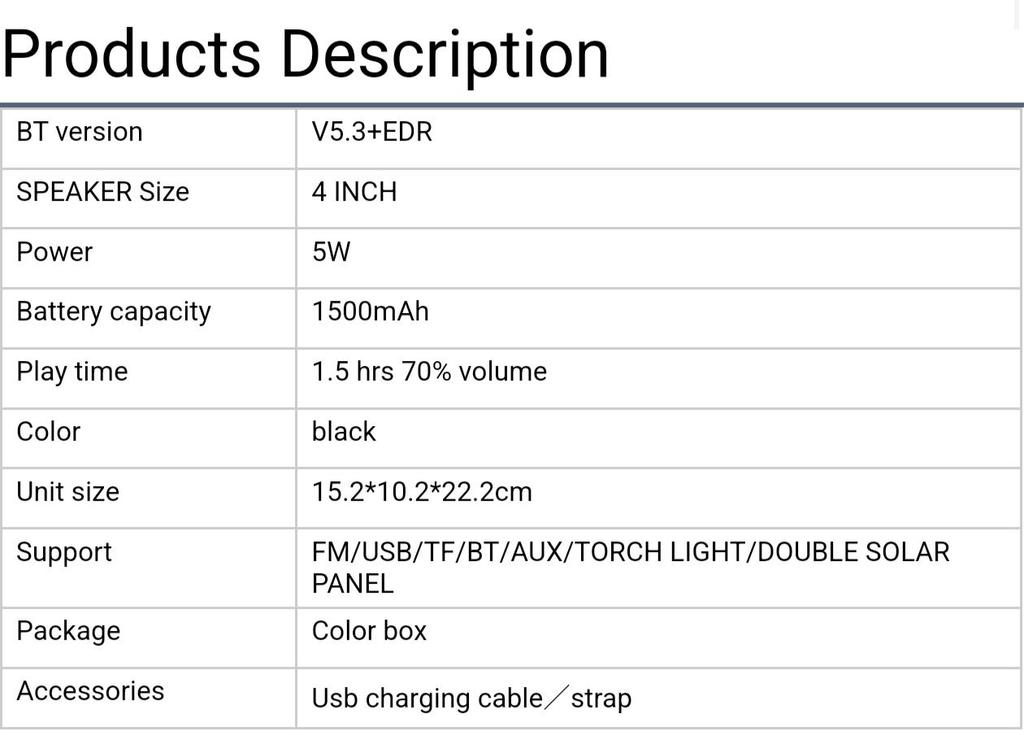 KTS-1767 Wireless Portable Speaker with Dual Solar Panels, FM Radio, and Torch Light