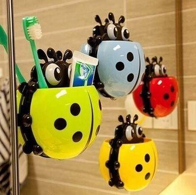 Organize your bathroom with the Ladybug Wall-Mounted Toothbrush Holder and Toiletry Storage Set. This practical solution is perfect for keeping your toothpaste and toothbrushes neatly stored.