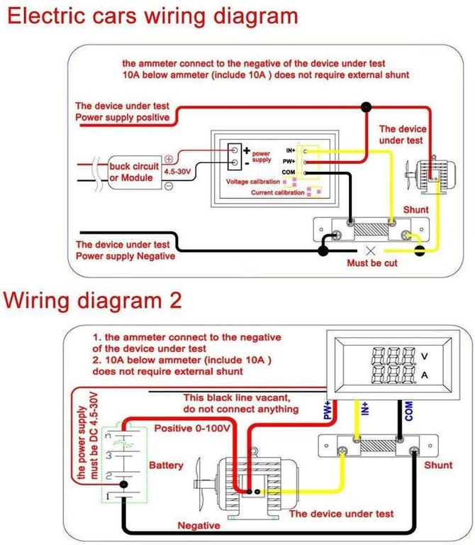 LED Digital Voltmeter and Ammeter – Dual Display for 100V 10A Monitoring, Battery Powered, Red & Blue LED