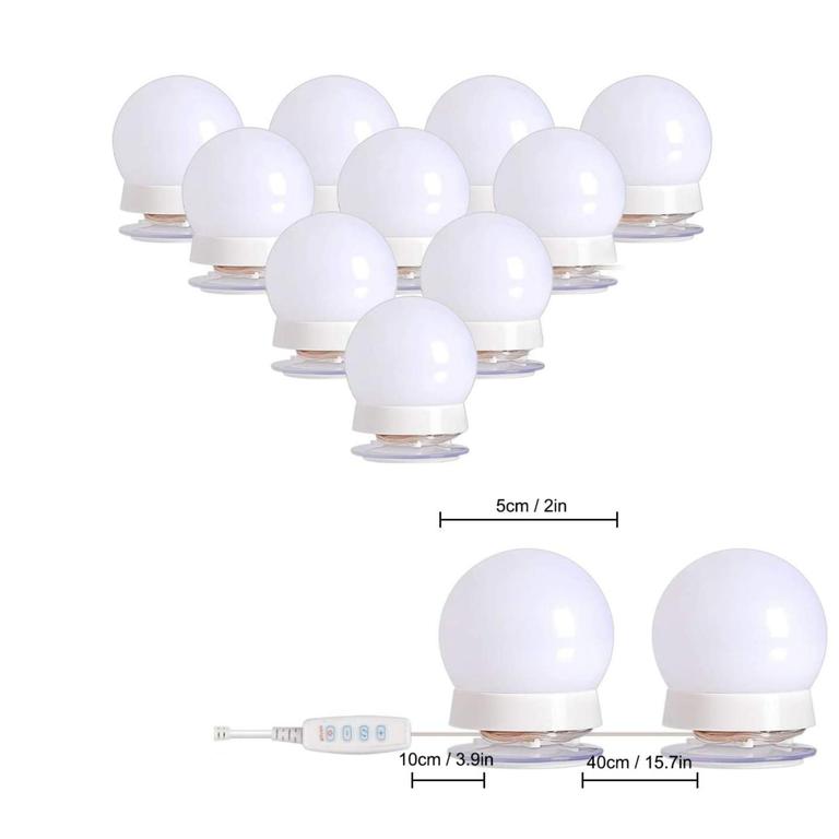 LED Vanity Light Bulbs for Makeup Mirrors | Set of 10 with 3 Brightness Settings