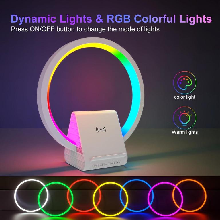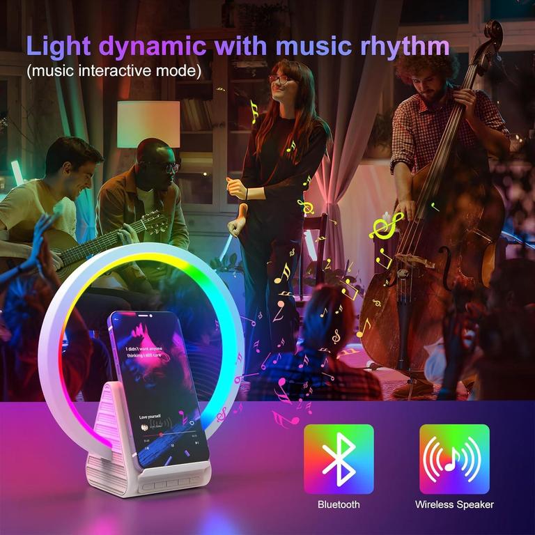 - • LED Wireless Charging Speaker with Bedside Lamp and Bluetooth