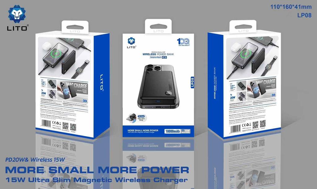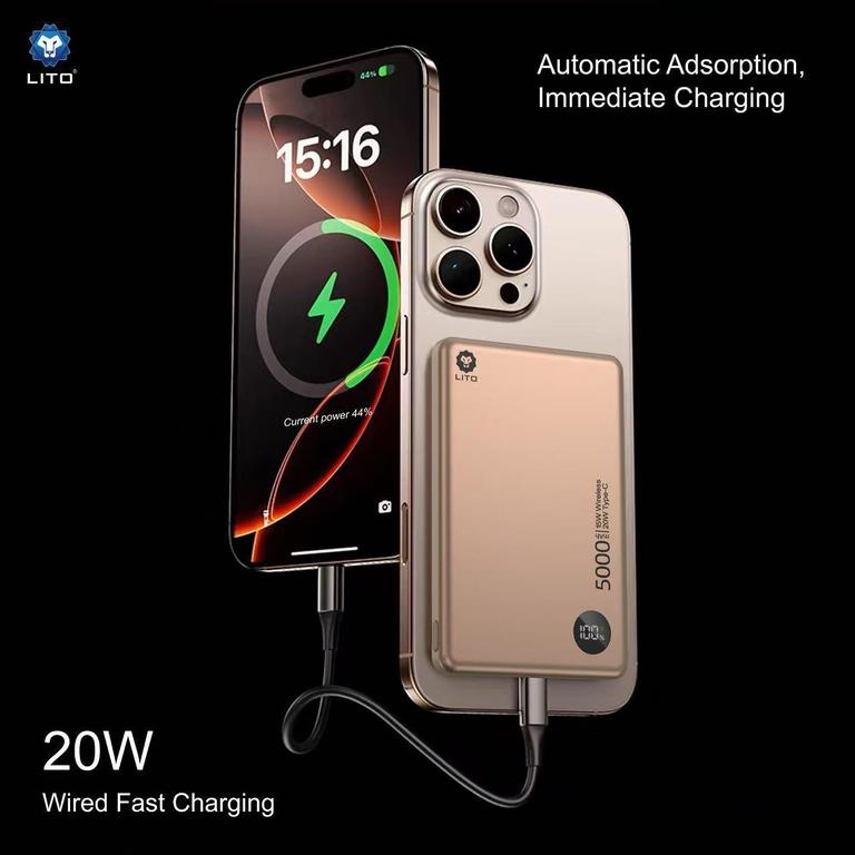 Experience a powerful and portable charging solution with the LITO LP08. It features a Qi2-certified 10,000 mAh battery packed into a slim 15.77mm aluminum design, equipped with N54-strength magnets for easy attachment, rapid 20W wired charging, 15W wireless charging, and real-time power monitoring.