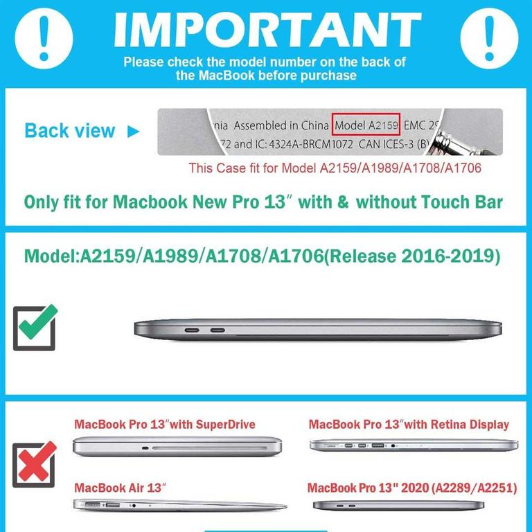 - Shockproof protective case for Apple MacBook Air 13″ Model A2337 M1 A2179 A1932 with Retina Display 2020 2019 2018 Release Only, not compatible with any other models. Please kindly check the model number “Axxxx” on the back of the MacBook before your purchase