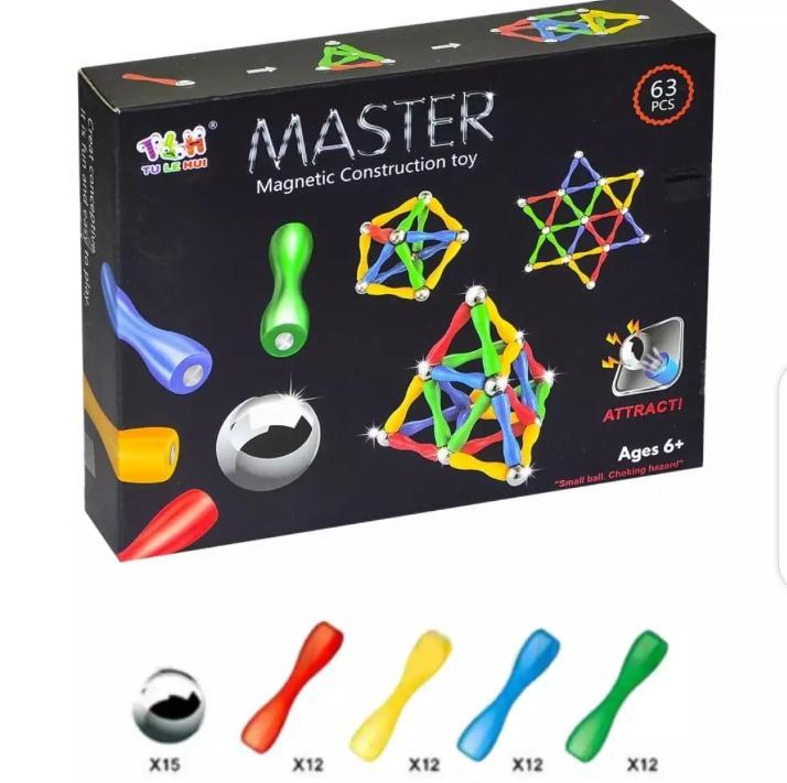 Magnetic Sticks and Blocks Set - 63 Pieces in a Box