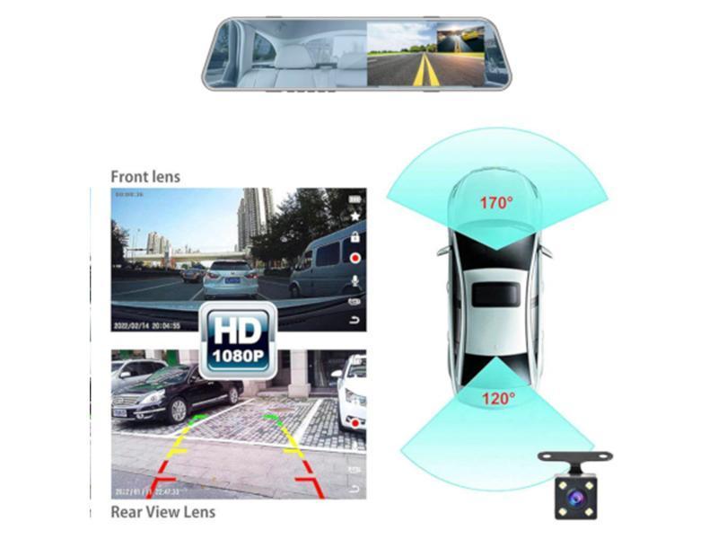 Maxxis Universal Dual Lens Car DVR Rearview Mirror Featuring a 4.3-Inch Display