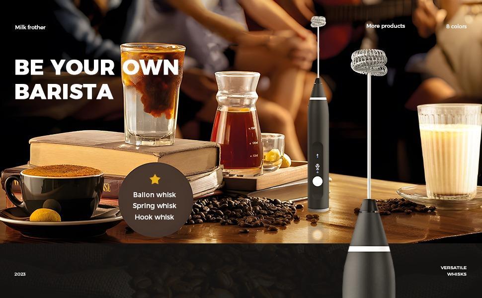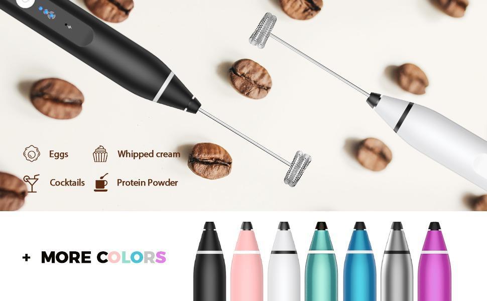 - TWO STAINLESS STEEL WHISKS: Equipped with two high-quality stainless steel whisks, cleaning will be a snap just by placing the rod under the running water. The ballon whisk can be used as an egg beater to whip eggs or heavy cream; the milk whisk is perfect for making cappuccino, latte, bulletproof coffee, hot chocolate. According to the size of the container, you can choose whisk or ballon whisk to achieve a better milk frother effect.