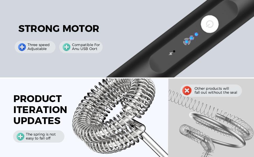 - High Quality Milk Frother: The detachable whisking head is made of food grade premium stainless steel, easy to clean. The built-in powerful low-noise motor brings strengthened speed rotation without disturbing your families and gives you a calm and tranquil morning.
