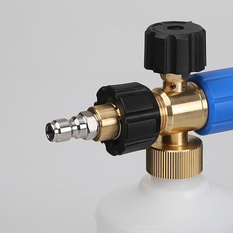 - Produces 30% denser foam than the classic foam cannon, while using as little as 100ml of shampoo per 900ml water(1:9 ratio). That means you can create more foam while using less shampoo.
