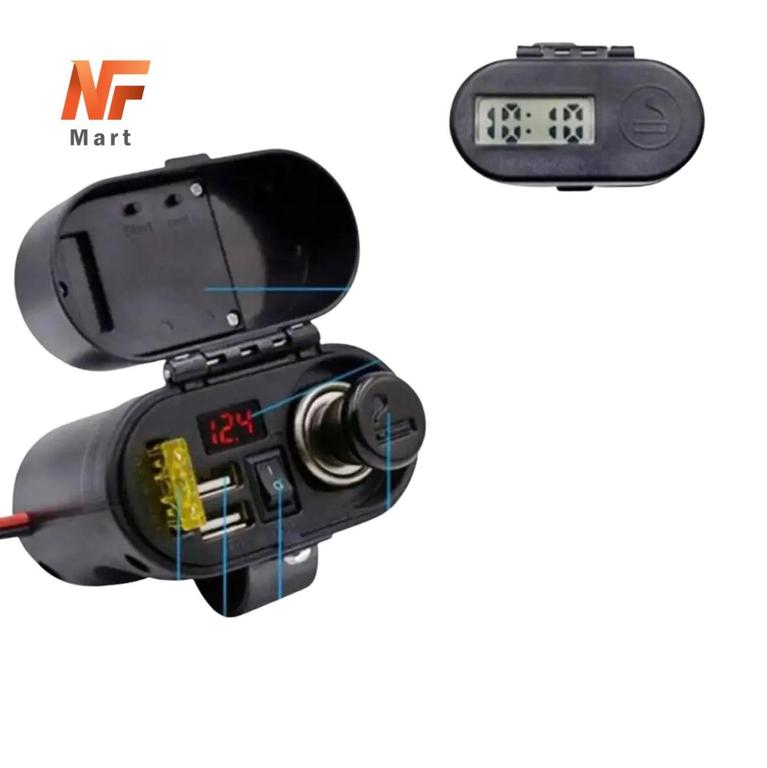 Motorcycle Bike USB Mobile Charger Multi Function 4 in 1 Waterproof Lighter with Voltmeter time Clock dual port High Quality