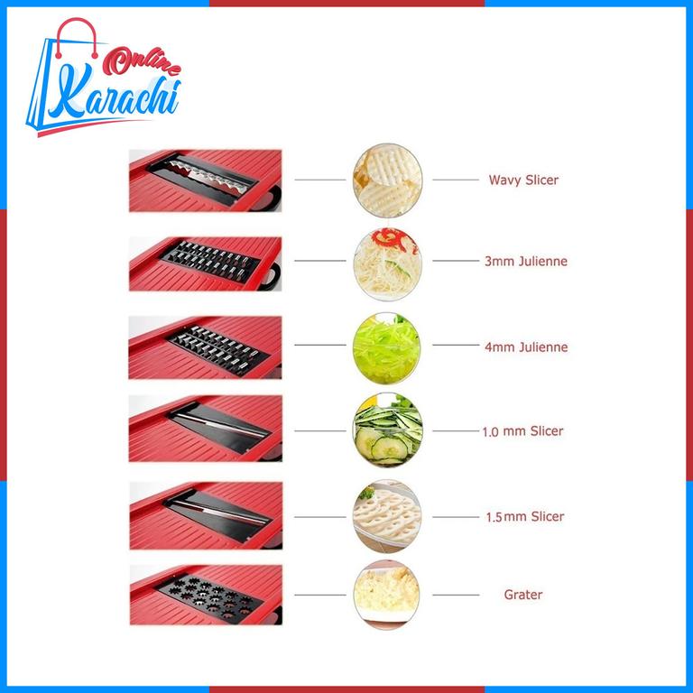 This multi-functional vegetable cutter from Online Karachi is designed to simplify your food preparation tasks. It offers the flexibility to slice, peel, and grate a variety of vegetables and cheese.