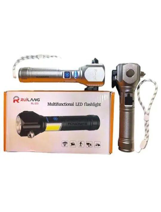The Multi-functional Metal LED Flashlight High Power Origonal Ruilang Rl-233 Rechargeable Metal Body Torch is a reliable companion for outdoor adventures. Specifically designed for camping and hiking, this metal torch provides high power LED illumination for improved visibility. Its rechargeable metal body ensures durability and long-lasting performance. The Ruilang RL-233 flashlight offers versatile functionality, making it an essential choice for outdoor enthusiasts in need of dependable lighting solutions. This flashlight is a must-have for anyone seeking reliable illumination during outdoor activities.