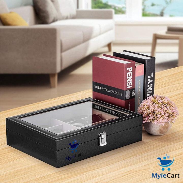 8 Grids sunglasses Box PU Leather sunglasses Case Holder Organizer Storage Box for sunglasses Display Best GiftColor: BlackType: Sunglasses BoxQuality: Faux LeatherWatches Option: 8 sunglass optionStyle: Fashion & Casual