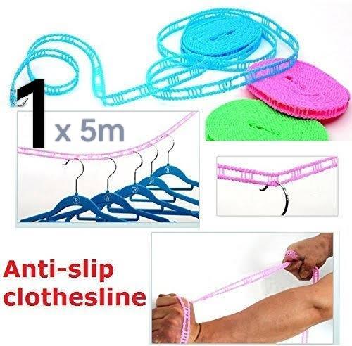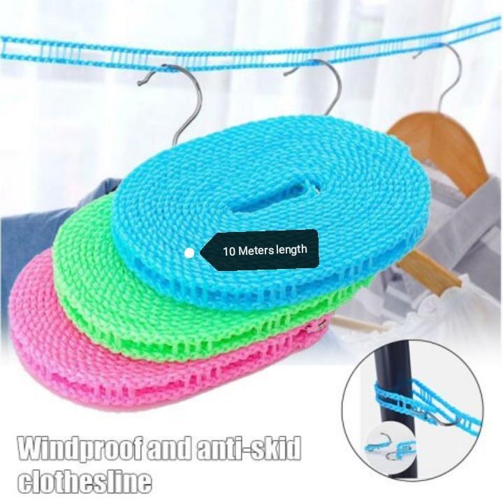 Nylon Clothes Washing Line Drying Rope, 5 Meter Windproof and Anti-Slip with Hooks, Color May Vary