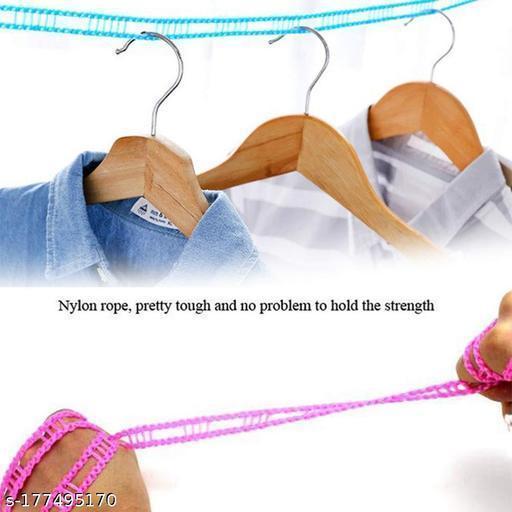 - [ADJUSTABLE LENGTH]: The clothesline is total 5 meters long(16.4 ft), 1.5cm wide. You can adjust the length with hooks according to your needs. Avoid trouble of twisting and knoting.