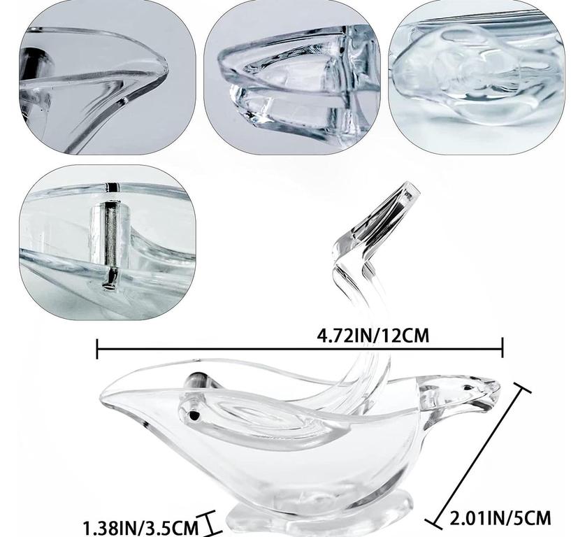 - This lemon juice squeezer is made of high-quality acrylic material, harmless to human body and environmentally friendly. The lemon squeezer could be cleaned easily. It's made of acrylic so it can be rinsed directly from the tap and wiped clean with a dry towel. It can also be washed directly in the dishwasher, which is safe and convenient. This juicer is designed in the shape of a bird. Put it on the counter to add interest and match the modern beauty of your kitchen. Lemons squeezed straight from fruit are used in shrimp, salmon, cocktails, tea, vegetables, chicken and beef to add flavor to your cuisine. Whether you're going for a picnic, hiking, camping or party.