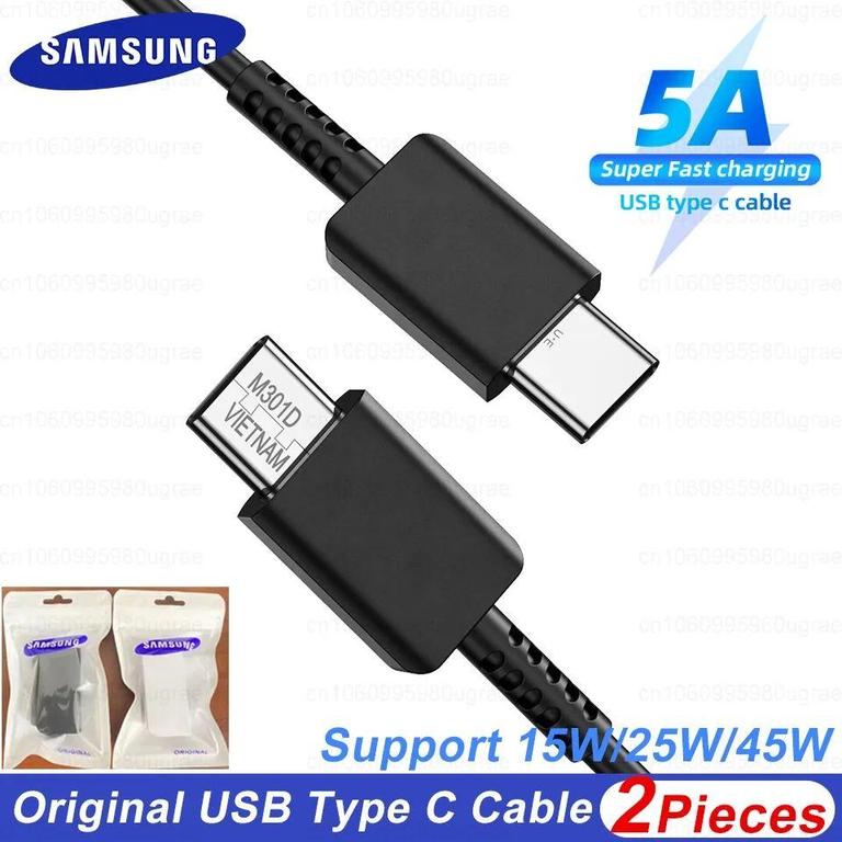 Original Samsung Type C To Usb C PD Cable 25w Super Fast Charging 35w, 45w , 65w, 5A For Galaxy S23 S22 S21 S20 Note20 Tab S8 A53 5G A54 A34